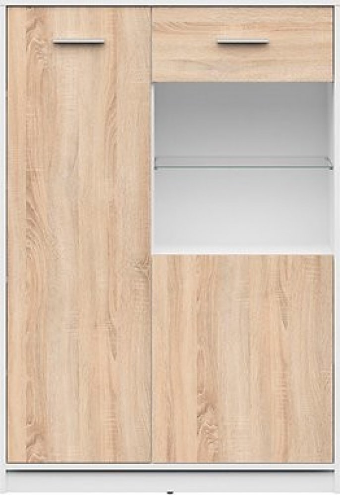 Vitrína z nábytkové kolekce NEPO PLUS je zhotovena v designovém, moderním provedení. Jde o nízkou vitrínu s proskleným průhledem. NEPO PLUS REG1D1W/90 je vyrobená z lamina barvě bílá/dub sonoma. V nabídce také další barvy viz barevné varianty. Jde o policovou vitrínu, díky čemuž je snadnější přehled v ukládaných věcech. Jedna police je skleněná. Zde můžete vystavit dekorace, které budete chtít osvítit přídavným LED světlem , které je možné dokoupit zvlášť - viz související zboží. Pro snadnější otevírání dvířek jsou na vitríně upevněny plastové úchytky stříbrné barvy. Dodáváno v demontu . Montáž je jednoduchá. Doporučujeme k ostatnímu nábytku NEPO PLUS. Sektorový nábytek NEPO PLUS představuje ideální kombinaci moderního designu s praktičnosti. Z jednotlivých prvků, jako jsou například regály, TV stolky, stoly, skříňky na boty a postel, lze prakticky a moderně zařídit kancelář, předsíň, obývací nebo dětský pokoj.