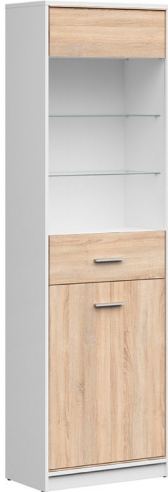Hledáte moderní kus nábytku do kterého byste mohli vystavit dekorace? Potom je tady pro vás vysoká vitrína NEPO PLUS REG1D1W. Vitrína NEPO PLUS je vyrobená z lamina v barvě bílá/dub sonoma . V nabídce také další barvy viz barevné varianty. Ve vrchní částí se nacházejí police. Díky tomu, že jsou k dispozici skleněné police, je vhodné přikoupit do vitríny také přídavné LED osvětlení , které vystaven...