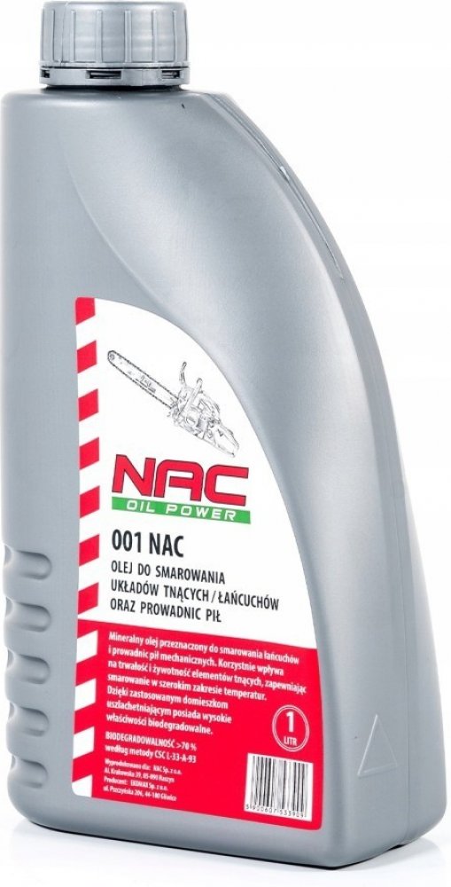 1l balení kvalitního oleje využijete pro mazání řetězů u motorových pil značky NAC.