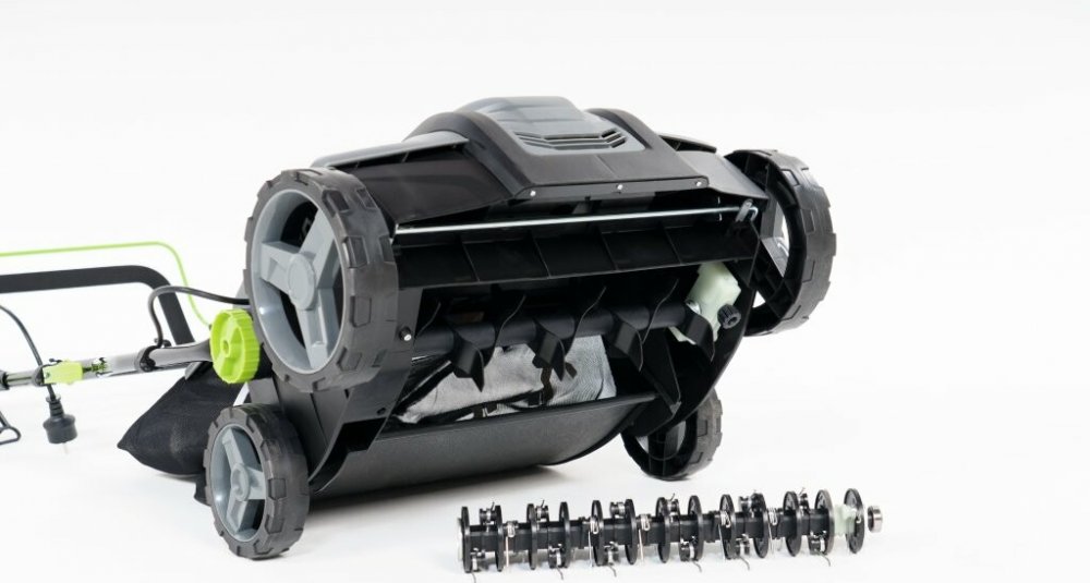 Přístroj prokypřuje a provzdušňuje půdu, čímž stimuluje růst trávníku. Na výběr máte ze dvou válcových nástrojů s kuličkovými ložisky. Provzdušňovací válec má na sobě speciální odolné pružiny, zatímco vertikutační válec je vybaven 16 řeznými noži. Záleží tedy jen na vás, jak chcete přístroj použít. Výměna je rychlá a snadná.