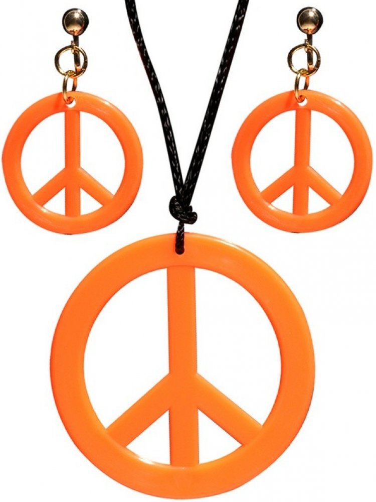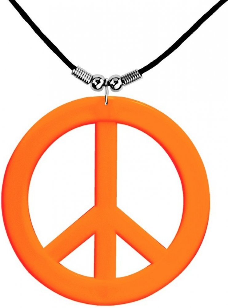 Plastový náhrdelník na černé šňůrce v typickém Hippies stylu. Růžový, zelený, žlutý a oranžový.