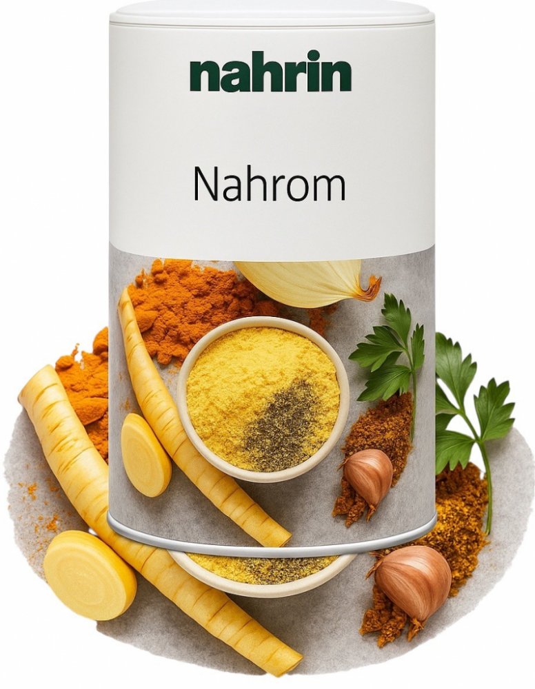 Nahrin Nahrom je přírodní kořenící směs bez alergenů, ideální pro dochucení široké škály jídel. Obsahuje horskou sůl z oblasti Bex (CH) a pečlivě vybrané bylinky a zeleninu, které zvýrazní chuť vašich pokrmů.