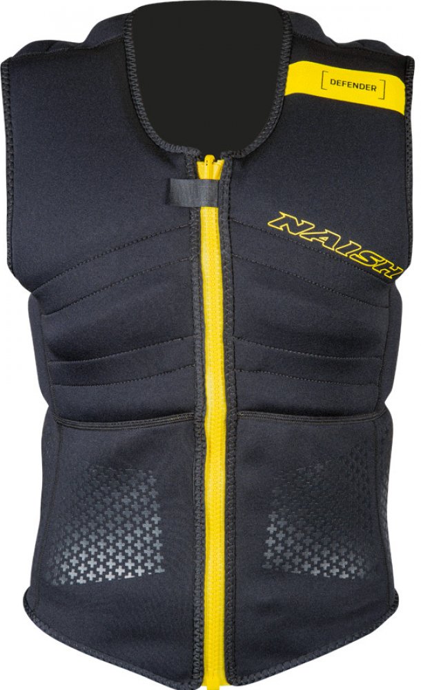 kite vesta NAISH Defender je vesta vhodná pro kiteboarding, windsurfing a wakeboaring. Začínajícím jezdcům poskytuje ochranu, kterou potřebují a zkušenému jezdci dodává důvěru, díky které se o moc lépe posouvají hranice tohoto sportu. Nabízí vynikající ochranu proti nárazu, ve vodě nadnáší a přináší tzv. klid na duši. Měkký neoprén a velké otvory na ruce poskytují vynikající svobodu pohybu i když se rozplácnete na vodní hladině. Vychtávky: Velikosti: XS, S, M, L, XL Silný přední zip Pojistka proti odepínání zipu Trojitý rozptylovač nárazu Měkký neoprén na stranách a rozích Kapsička na klíče Ergonomicky tvarovaná vesta
