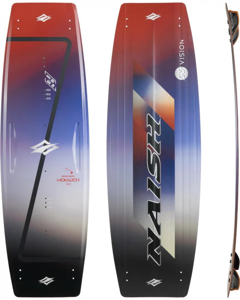 Kiteboard NAISH Monarch Nvision mění hru pro vysoce výkonné jezdce a Big Air nadšence. Může se pochlubit inovativní technologií, vynikajícími lehkými materiály a špičkovou konstrukcí jádra. Vyrobeno z 3K uhlíkových vláken a optimalizovaného pěnového/dřevěného jádra, poskytuje lehkou a citlivou jízdu.