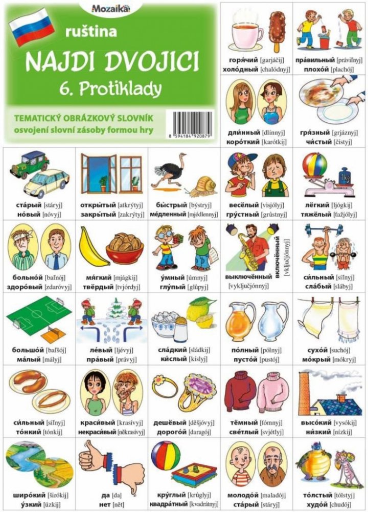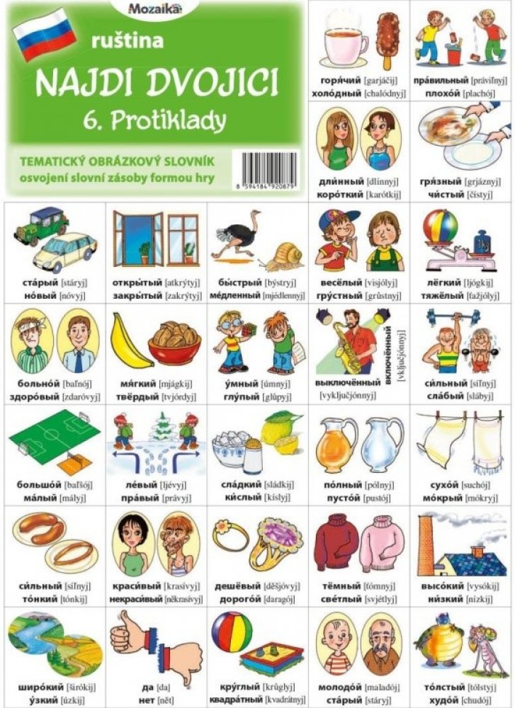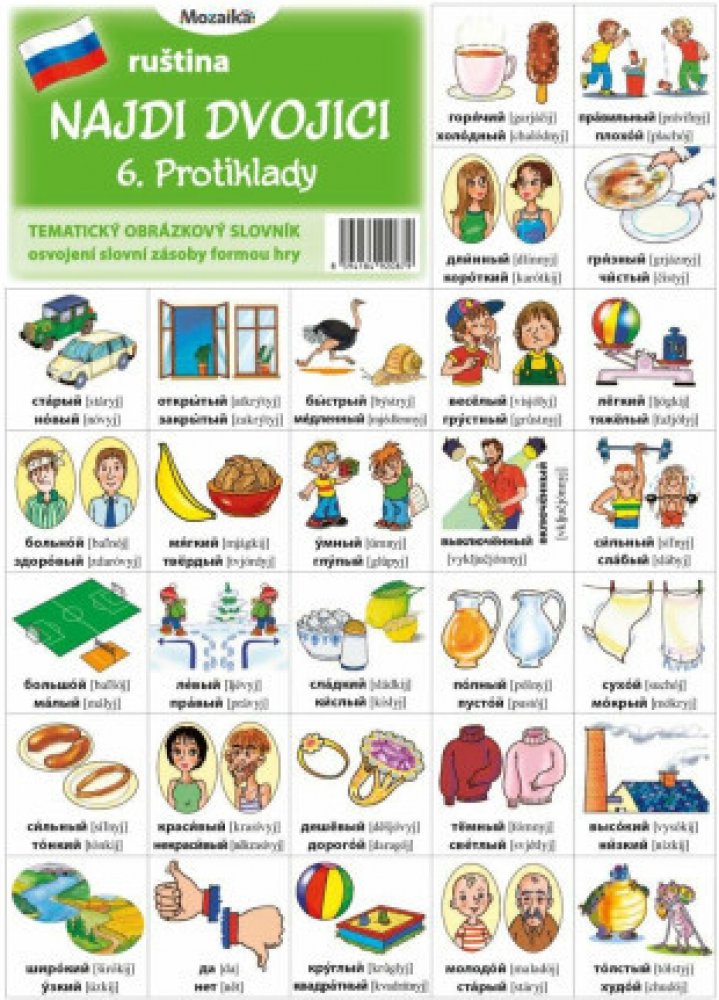 Mozaika - Najdi dvojici - RJ - 06. Protiklady Tematický obrázkový slovník metoda postupného osvojení slovní zásoby podle tematických skupin. z kategorie Knihy | Učebnice | Cizí jazyky | Slovníky | Ruské slovníky | Ilustrované od Infoa naleznete ne e-shopu KnihyDobrovsky.cz!