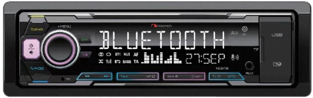 Dvouřádkový LCD displej s VA technologií zajišťuje ostrý a přehledný obraz s barevným podsvícením tlačítek, což usnadňuje ovládání i za šera. Autorádio Nakamichi NQ517B podporuje různé formáty včetně Hi-Res FLAC a nabízí USB i SD vstupy pro pohodlné přehrávání vaší hudební sbírky.