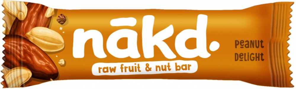 Nakd Peanut delight 35 g. Pochutnejte si na datlové tyčince z arašídů, která neobsahuje žádné přidané cukry. Skvělá rychlá svačinka, kterou můžete mít kdekoliv s sebou. Bez konzervačních látek, lepku, mléka, sóji a přidaného cukru. Obsahuje pouze přirozeně se vyskytující cukry. Vyrobeno bez tepelné úpravy s min. procesem. Složení : Datle (53%), arašídy (46%), mořská sůl, přírodní dochucovadlo.