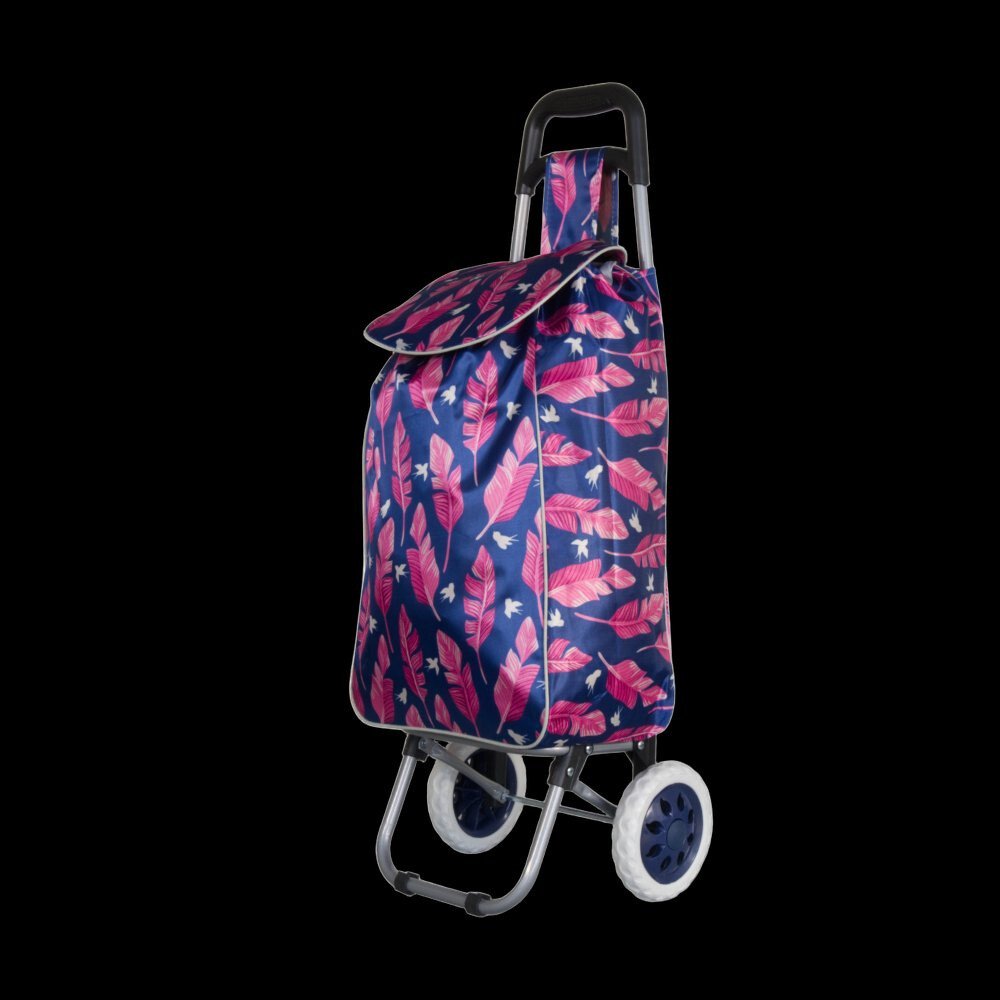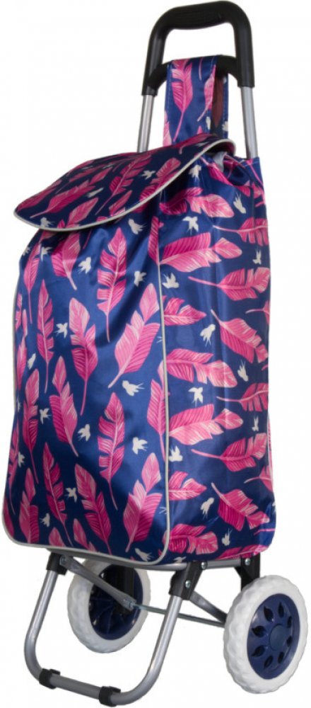 Nákupní taška na kolečkách METRO ST-01F - modrá/růžový list