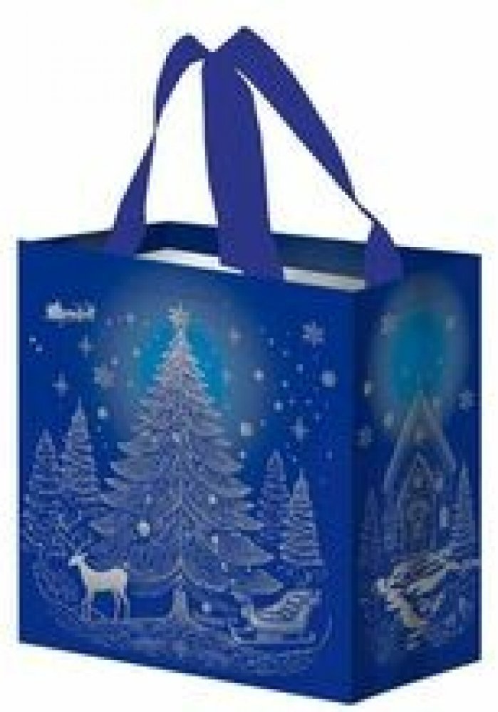 Víceúčelová nákupní taška z netkané textilie, vyrobená z recyklovaných materiálů. Taška je pevná, spoje jsou svařované, má veselý vánoční potisk. Dno tašky lze rozložit do obdélníků. Nenaplněná nestojí. Uši jsou 15 cm dlouhé. Využijete jako dárkovou tašku na pamlsky i na malý nákup.