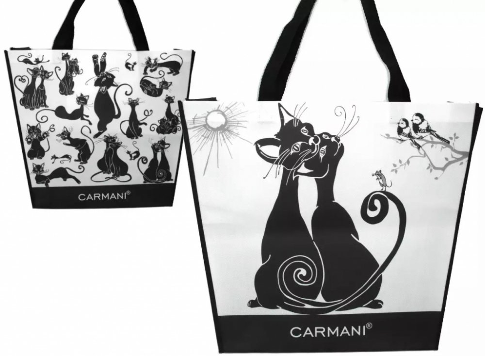 Ekologická velká nákupní taška přes rameno se zamilovanými kočičkami z jedné strany a bandou bláznivých koček z druhé strany. Složená se vejde do kabelky i batůžku. Kočky pohlídají váš nákup i peněženku. Super také na cesty.