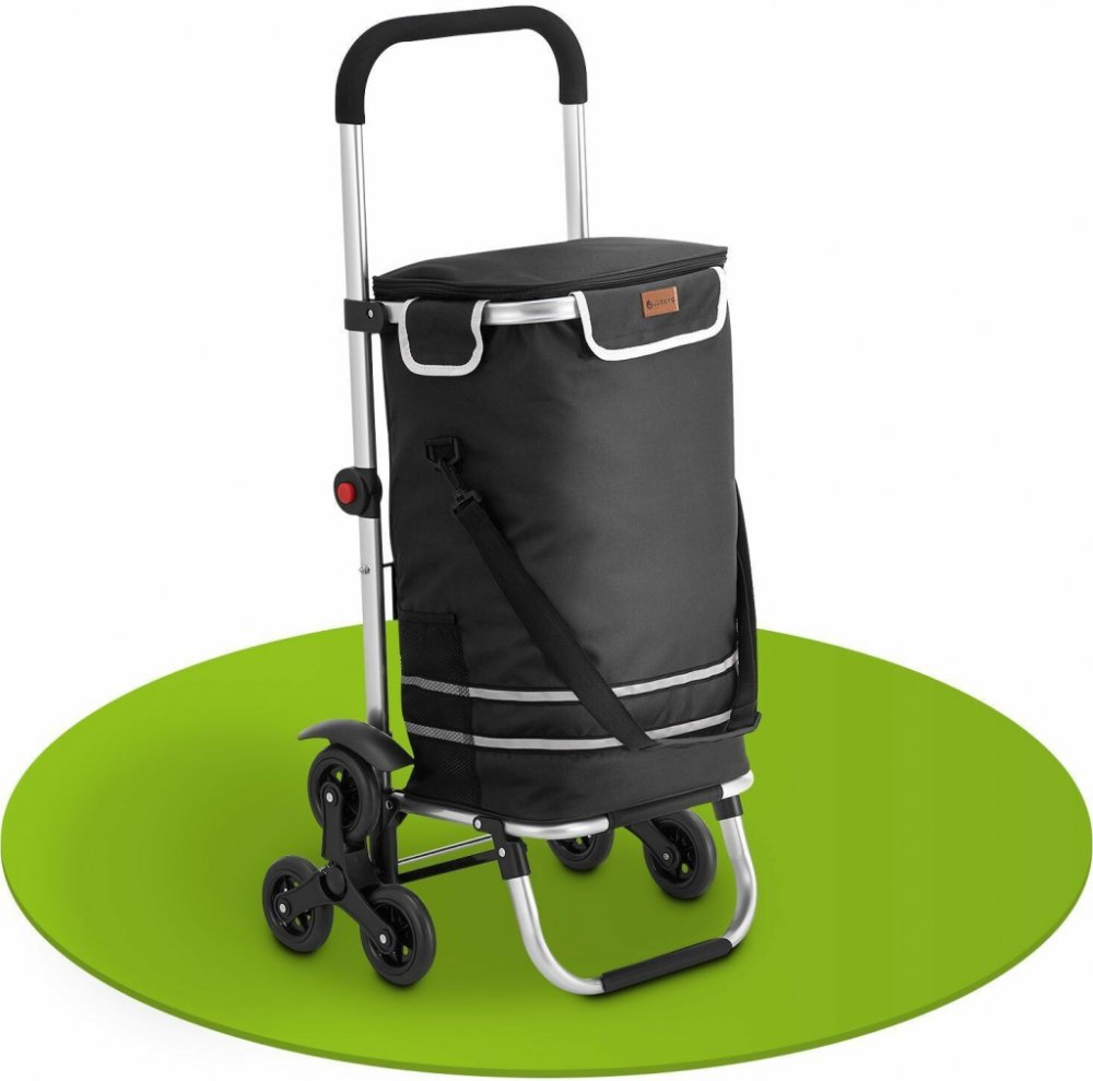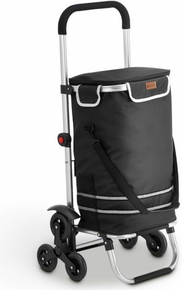 Nákupní taška 300901, nákupní vozík 3v1, skládací, s objemem 56 l, černáFunkce, vlastnosti a další informace Materiál rámu: hliník Materiál tašky: Oxford tkanina 600D (odolná proti UV záření) Materiál koleček: polyetylen Barva: Černá Celkový objem: 56 litrů Max. nosnost: 30 kg Oblast použití: vnitřní / venkovní Speciální vlastnosti: Skládací, lze použít jako ruční vozík, vodoodpudivý Vlastnosti: odnímatelná taška, izolační chladicí oddíl, boční kapsy (levá, pravá a na zadní straně), reflexní proužky Rozměry Celkové rozměry vozíku (VxŠxH): 98 x 37 x 43 cm Rozměry ve složeném stavu (VxŠxD): 10 x 43 x 76 cm Průměr jednoho kola: 11 cm Taška (VxŠxH): 54 x 24 x 31 cm Ramenní popruh (ŠxD): 5 x 73-127 cm Rozměry chladicí tašky (ŠxHxV): 27 x 10 x 33 cm Síťovaná kapsa (ŠxV): 13 x 18 cm Látková taška (boční) (ŠxV): 10 x 22 cm