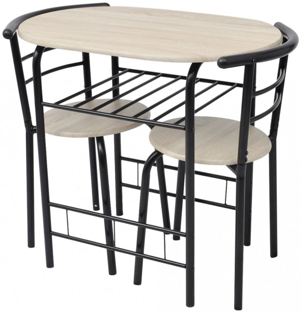 Tento elegantní moderní snídaňový set je skvělým řešením pro všední ranní stolování. Je kombinací stylu a funkčnosti. Díky čistým liniím a kompaktnímu designu se výborně hodí do bytů, ale i do kaváren a barů. Abyste ušetřili více místa, můžete židle zasunout pod stůl. Tento snídaňový barový set je vyroben z vysoce kvalitního MDF, takže se snadno čistí a hodí se do každého stylu zařízení. Díky kvalitnímu železnému rámu je tento barový nábytek velmi stabilní a trvanlivý. Sestavení je velmi snadné. Balení obsahuje 1 barový stůl a 2 barové židle. Důležité upozornění: Barva se může lišit kus od kusu, což činí každý náš produkt jedinečný. Výběr kusu k dodání je náhodný. Barva rámu: černá Materiál: Železný rám + MDF Rozměry stolu: 80 x 53 x 74 cm (D x Š x V) Rozměry židle: 47 x 42 x 75 cm (Š x H x V) Průměr sedáku: 35 cm Výška sedáku od země: 45,5 cm Balení obsahuje: 1x barový stůl, 2 x barovou židli Montáž je velmi snadná Maximální nosnost: 110 kg