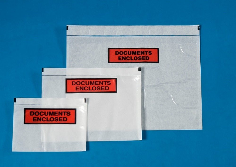 *nalepovací obálka na balíky formát DL*průhledná s potiskem Documents enclosed*rozměr 227 x 112 *materiál LDPE*balení 1000 ks/karton*cena za 1 ks materiál: polypropylen