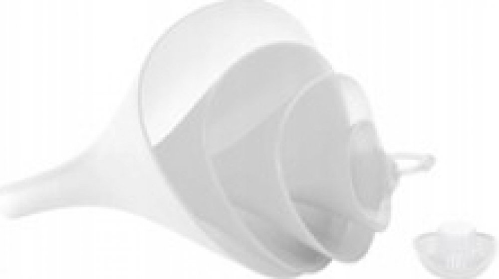 Trychtýře skvěle usnadňují cezení a nalévání tekutin do malých i velkých nádob. Součástí balení je univerzální, neucpávající se sítko, které lze zaměnitelně použít v každé ze čty...