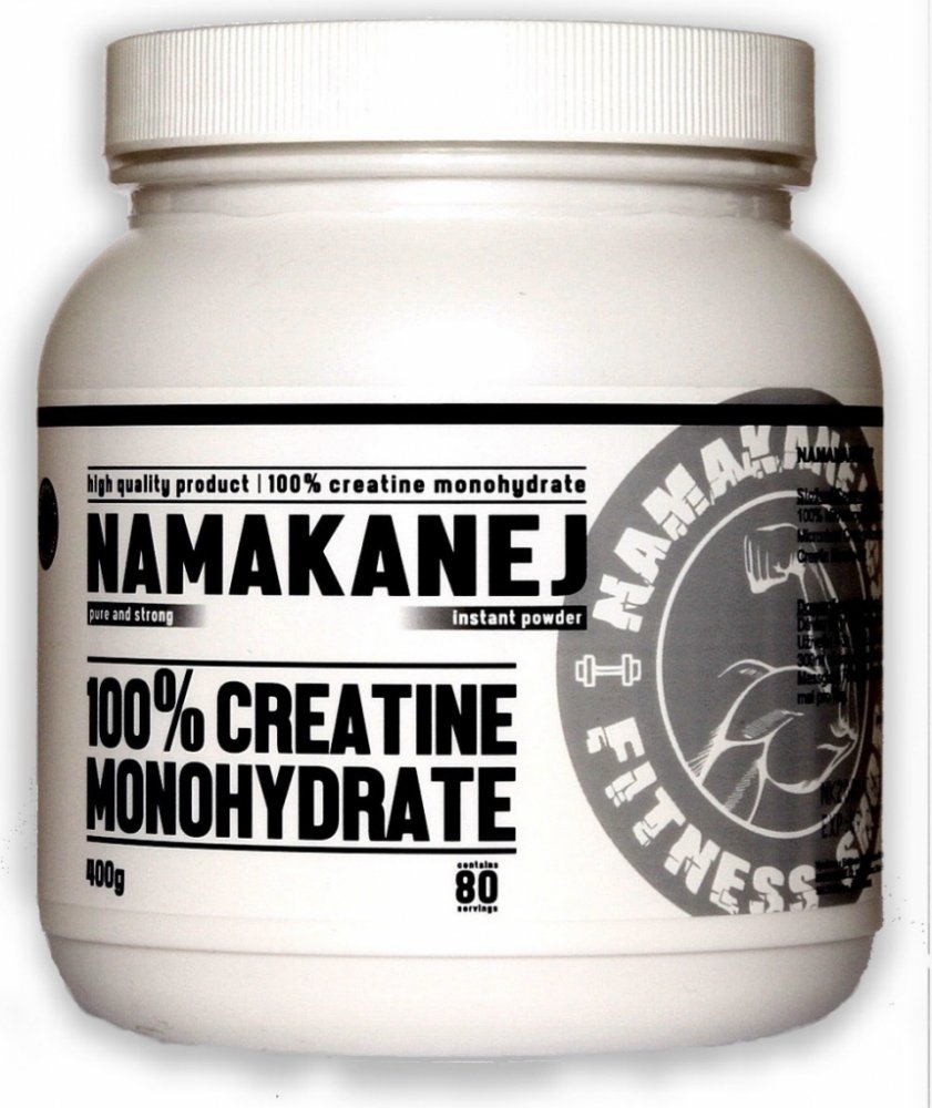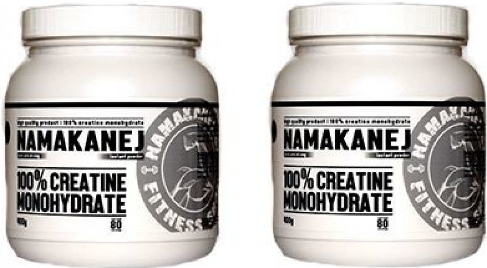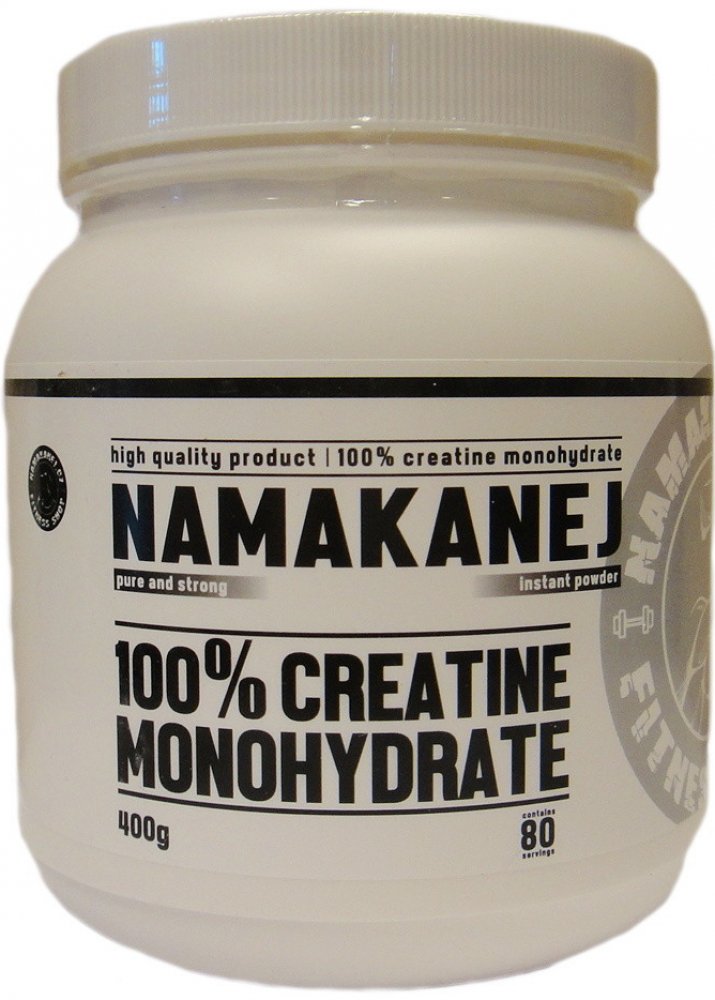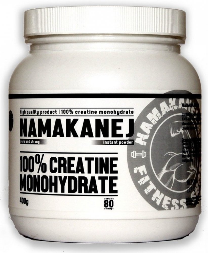 Namakanej 1+1 100% CREATIN MONOHYDRATE 400G 100% čistý kreatin monohydrate ve formě prášku. Suplementace kreatinem zvyšuje jeho intramuskulární koncentraci a tím i využitelnost ATP (zdroj energie).Kreatin rapidně zvyšuje svalovou sílu a objem svalů (natahuje do svalů vodu). Sportovcům pomáhá rychle zlepšit fyzickou kondici a nabrat svalovou hmotu. Ulehčuje přizpůsobení organismu fyzické námaze a posiluje anabolické procesy ve svalové tkáni. Kreatin má také silný antikatabolický účinek a neutralizuje zakyselení svalů.Přibližně 30 vědeckých studií dokázalo, že příjem kreatinu vede k tvorbě čisté svalové hmoty. Nejvýraznější růst svalstva byl pozorován u osob při silovém zatížení při zatížení 80-120% maximální síly, trvajícím 3 měsíce.Svalstvo může díky obrovským zásobám kreatinu zvládat podstatně větší zatížení, což vede ke stimulaci růstu a výstavbě svalstva. Víme přitom, že kreatin zvyšuje zavodnění svalových buněk, což je však anabolickým signálem a vede k syntéze nových bílkovin. Toto zavodnění svalových buněk vodou tedy podporuje výstavbu svalstva.Doporučená denní dávka:Dávku 5g (1 odměrka) rozmíchejte ve 300ml vody. Uživejte 1-3x denně.Složení:100% Mikronizovaný kreatin monohydrát Výživové údajePoložkaVe 100 g výrobkuCreatine Monohydrate100 g