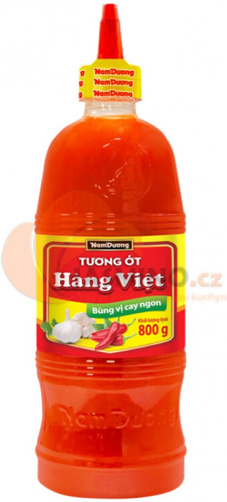 Složení: voda, chilli (4,3%), česnek, stabilizátory E415, E1422, cukr, sůl, zvýrazňovač chuti E621, regulátor kyselosti E330, E260, konzervační látka E211, umělé sladidlo E950, E951, umělé barvivo E150c, E110, E124, extrakt z papriky