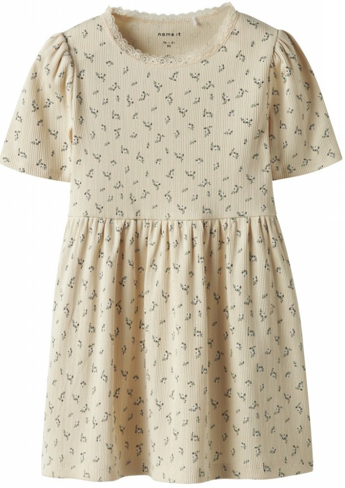 Bavlněné šaty s krátkým rukávem od značky Name It vhodné pro každé roční období a příležitost. Látka je pružná a měkká a nabízí maximální pohodlí a volnost pohybu. Ozdobná krajka okolo krku dodává šatům eleganci.