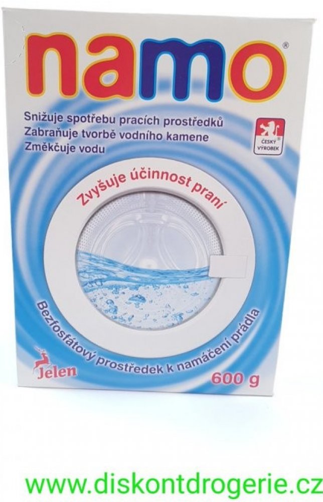 Návod k použití: Obsah balíčku postačí k přípravě max. 370 l roztoku pro namáčení. Vyšší dávka není na škodu, neboť špína se rychleji rozpouští. Potřebné množství Namo vysypte zvolna za stálého míchání do vlažné vody. Utvoří-li se hrudky, pečlivě je rozmačkejte, aby se snáze rozpustily. Do takto upravené lázně namáčejte bílé a stálobarevné prádlo nejlépe přes noc. Po namáčení prádlo vymáchejte, vyždímejte a perte obvyklým způsobem.