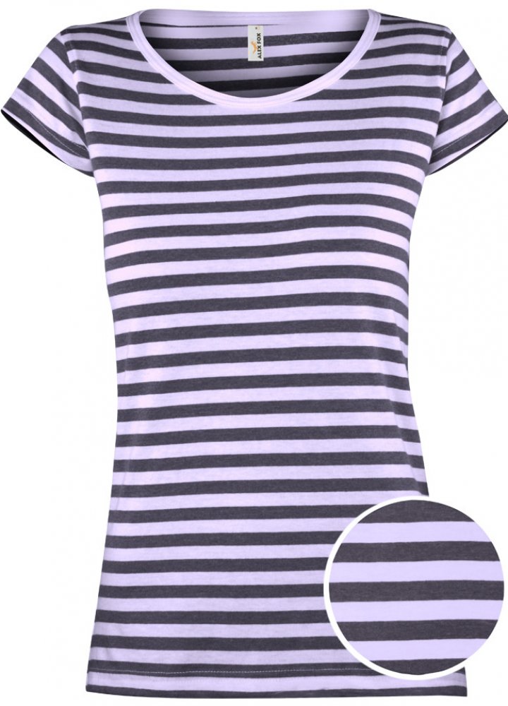 Velmi elegantní dámské triko s krátkými rukávy a kulatým průkrčníkem. Kvalitní materiál a trendové proužky jsou skvělým předpokladem pro maximální spokojenost zákazníků. Výrobek je vhodný pro potisk a výšivku.