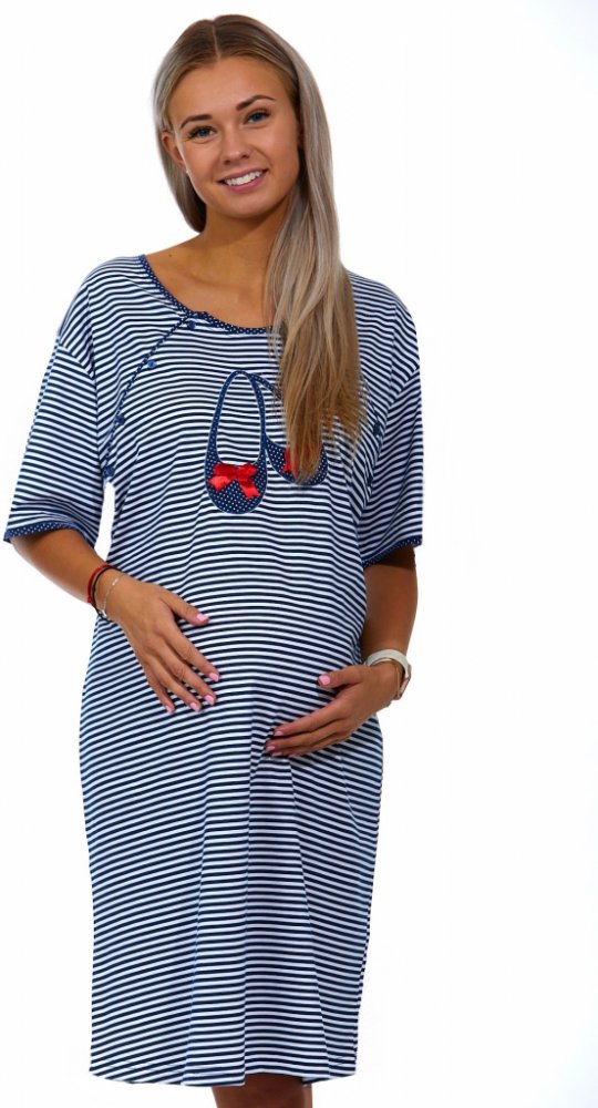 Námořnicky pruhovaná kojící a těhotenská košilka na knoflíky Slippers big 1C3268 modrá