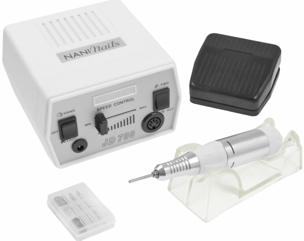 Poškozen originální obal Profesionál vhodný pro domácnost nastavitelná rychlost do 30 000 ot./min volitelný obousměrný chod brusky ergonomicky tvarovaná, výkonná, bezvibrační rukojeť velmi tichý provoz zabudovaný systém chlazení (nevyzařuje teplo) praktický stojan na frézku nožní pedál pro jednoduché ovládání vestavěný displej, možnost regulace otáček ideální pro domácí použití či v malých kosmetických salónech (2-3 zákaznice denně) Síla, která vám padne do ruky Rychlost otáček této brusky s úžasným výkonem 35 W můžete regulovat podle potřeby na vestavěném displeji od 0 až do 30 tisíc otáček za minutu. Ke spokojenosti při práci vám bude pomáhat ergonomicky tvarovaná rukojeť s vibracemi eliminovanými na minimum. Díky tomu se vaše prsty při dlouhodobé práci neunaví, nerozbolí vás ruka ani zápěstí. Manipulace s touto velice výkonnou bruskou je jednoduchá i příjemná, a to i díky praktickému nožnímu pedálu. Modeláž vám půjde pěkně od ruky! Pro vás i kamarádky Bruska má volitelný obousměrný chod a funkci rukojeti Twist Lock, která umožňuje rychlou a jednoduchou výměnu frézek. Využijete ji spíše v domácím prostředí. Bruska je doporučena pro úpravu 2-3 kompletních manikúr denně. U vyšší frekventovanosti využití by mohlo docházet k rychlému opotřebení přístroje. Při práci pomáhá vám i brusce systém chlazení. Ten zmenšuje riziko přehřívání i vyzařování tepla do okolí. Také hluk přístroje je pro váš komfort redukován na minimum. [nani3] Nevíte si rady při výběru té správné brusky či frézky? Já vám poradím! Přečtěte si článek na mém blogu. Stačí pár minut a budete o bruskách všech typů vědět první poslední!Líbí se vám tato frézka, ale nejste si jistá, jestli je to ta pravá? Můžete se podívat na její porovnání s brusnými kolegyněmi. Článek z mého blogu najdete ZDE! [/nani3] Technické parametry: výkon 35 W 220-240 V / 50-60 Hz hmotnost rukojeti: 160 g možnost přepínání a řízení otáček vyhovuje všem evropským normám CE Balení obsahuje: rukojeť Twist-Lock 1x frézka JD700 1x nožní pedál 1x stojan pro frézku 4x náhradní frézy 1x brusný váleček návod originální krabice