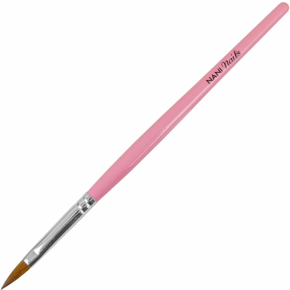 Kulatý štětec na akryl s přírodním vlasem v pastelově růžové lakované rukojeti s logem NaniNails. Vysoce kvalitní štětec vhodný pro použití na akryl. Rozměry: délka štětce 173 mm délka štětin 19 mm šířka štětin 5 mm