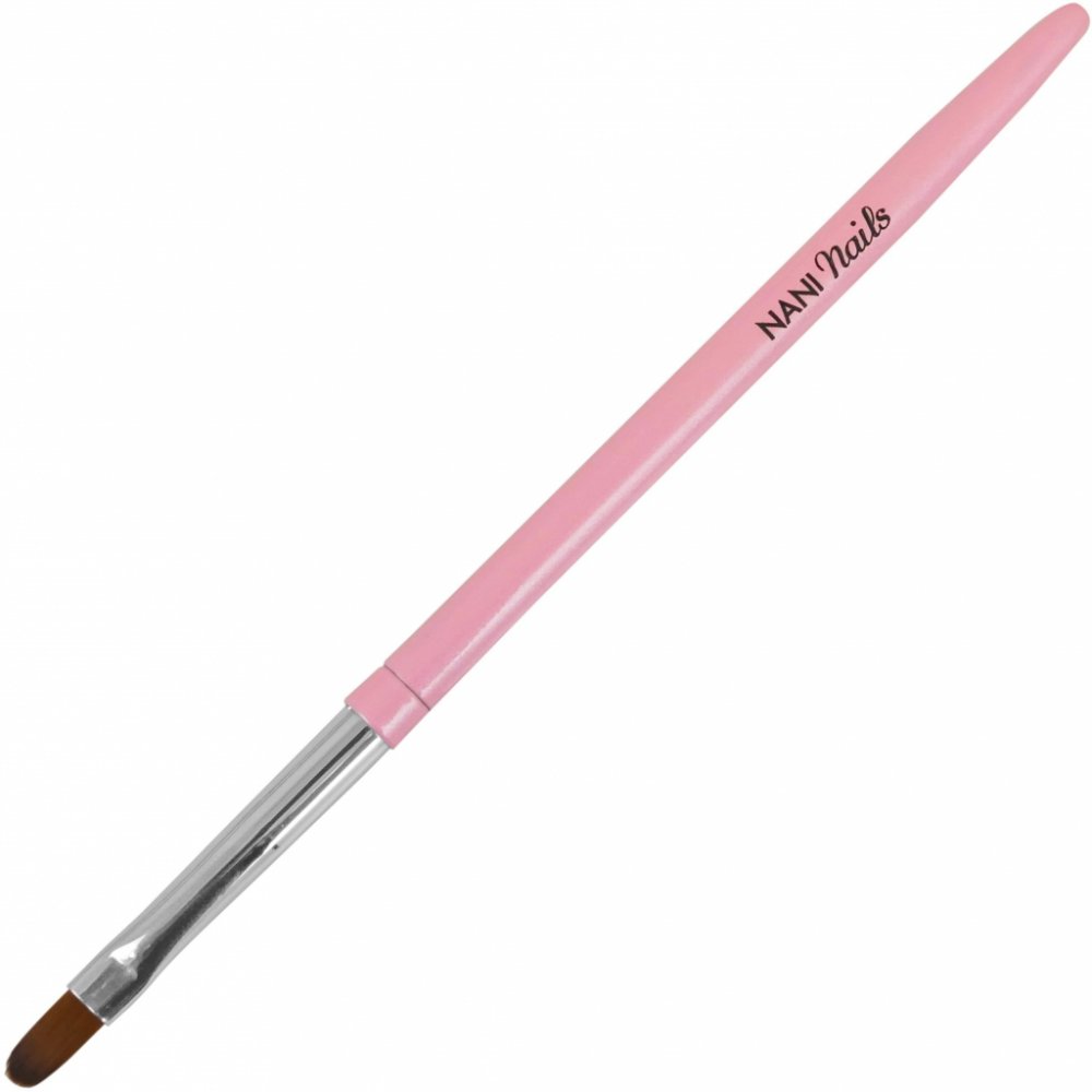 Profesionální štětec na gel ve tvaru kočičího jazýčku se syntetickým vlasem v růžové metalické rukojeti s logem NaniNails. Štětec je vhodný na přesné modelování až k okraji nehtu. Kovová rukojeť s krytem pro ochranu vlasu. Rozměry: délka štětce 148 mm délka štětin 10 mm šířka štětin 5 mm