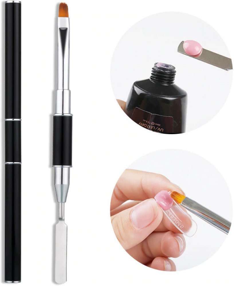 Oboustranný štětec speciálně určený pro práci s poly/akryl gelem. Z jedné strany se nachází plochý štěteček, s kterým se velmi snadno pracuje s poly/akryl gelem. Z druhé strany nalezneme stěrku, která slouží pro jednoduché nabírání a další manipulaci s poly/akryl gelem.