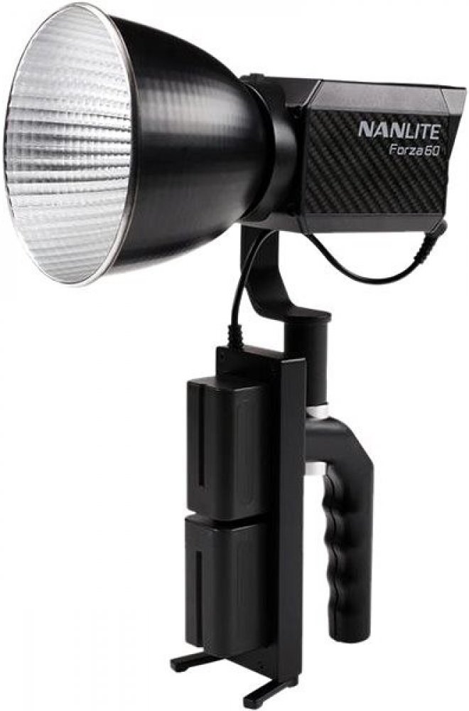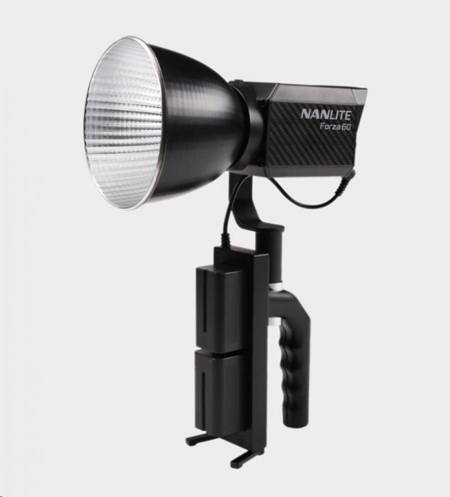 LED světlo Nanlite Forza 60B, které bylo vytvořeno pro práci na jakémkoli místě bez ohledu na dostupnost napájení, může být napájeno pomocí dodávaného AC adaptéru, 14.8V V-mount baterie nebo pomocí 2 baterií řady Sony NP-F za použití speciálně navržených držáků baterií (prodává se samostatně).
