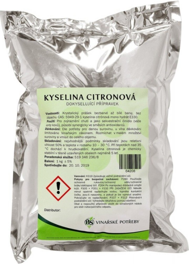 Složení: kyselina citronová monohydrát E 330, ES č. 201-069-1