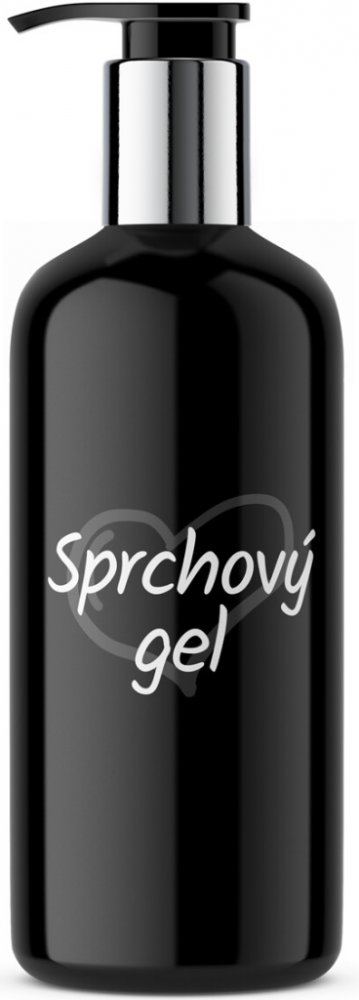 Lahvička s pumpičkou a etiketou "Sprchový gel"