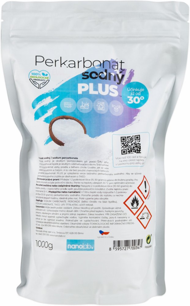 Perkarbonát sodný je bílý prášek, který se používá jako ekologický a biologicky odbouratelný čistící a bělící prostředek. Je to bezpečný a účinný způsob, jak odstraňovat skvrny a nečistoty.