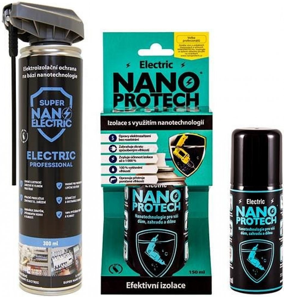 Spreje NANOPROTECH Electric ochrání všechny elektrické systémy před oxidací, vlhkostí, zkratem a unikajícím proudem. Díky pokrokům v nanotechnologii dokáží výrazně prodloužit životnost zařízení a šetřit tak vynaložené náklady na údržbu, servis a opravy. Vlhkost navíc dokáží vytěsnit i z vodou poškozených přístrojů, znovu obnovit jejich funkci a navíc je ochránit před další korozí.