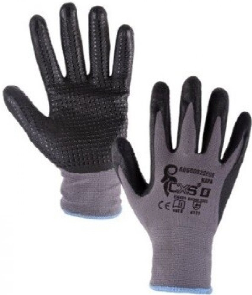 Bezešvé rukavice z jemného směsového úpletu, dlaň a prsty povrstveny nitrilovou pěnou s prodyšnou úpravou MICROFOAM a nitrilovými terčíky pro lepší úchop. Doporučené aplikace: automobilový průmysl, logistika, skladování, hobby, práce s kluzkými předměty, zahrada, stavebnictví, komunální služby, montáž a balení malých součástek.