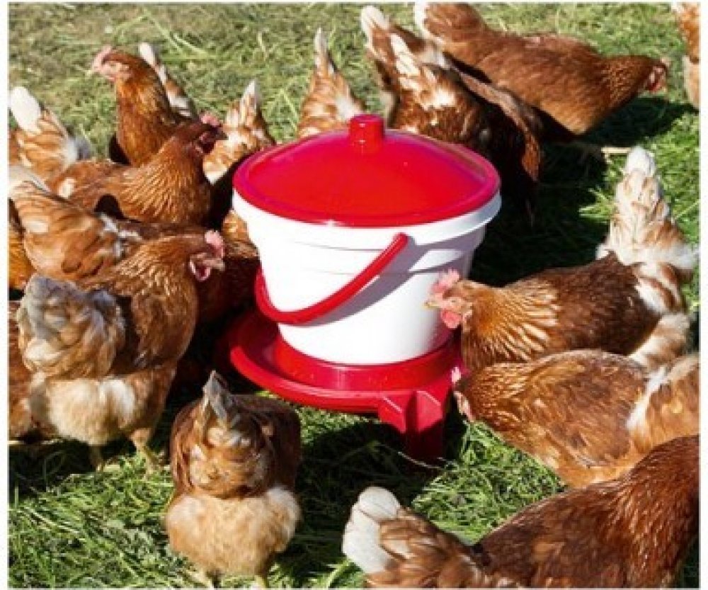 Napájecí kbelík plastový vhodný pro slepice, kachny a jinou drůbež.