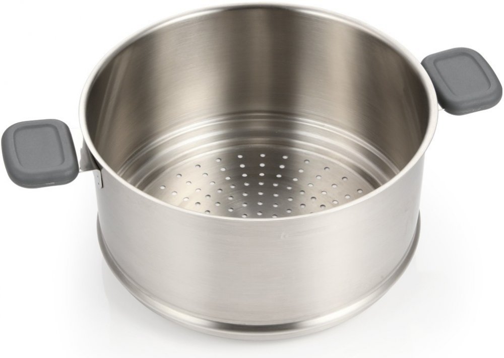 Perforovaná nerezová nádoba je vynikající pro zdravou přípravu pokrmů v páře.