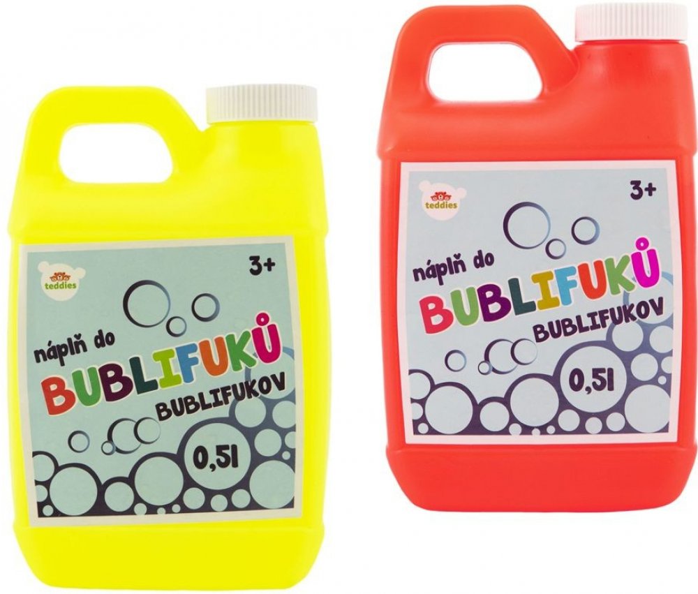 Kdo by nemiloval bublinky? Každé dítě je má rádo a nezkazí žádnou zábavu. Náhradní náplň do dětského bublifuku v plastové nádobě o objemu 0,5l. Technické údaje: Objemu 0,5l. Balení obsahuje pěnovou tekutinu, která je zdravotně nezávadná. Rozměry výrobku 10 x 15 x 5 cm. Vhodné pro děti od 3 let. Obsah balení: Náplň do bublifuku 0,5 litr 2 barvy Pokud není uvedeno jinak, cena se vztahuje na 1 ks produktu. Konkrétní barvu nebo druh výrobku není možné z technických důvodů zvolit, objednávce bude přidělena náhodná varianta dle skladových možností.