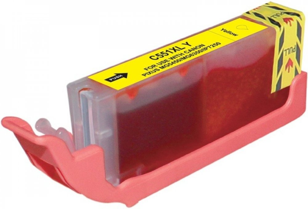 Obsahuje nový chip, funkce shodné jako originál (zobrazuje stav inkoustu). Canon 551 XL (CLI-551) XL 6446B004 kompatibilní inkoustová kazeta, barva náplně žlutá. Kompatibilní s: Canon Pixma IX6850, Canon Pixma iP8750, Canon Pixma MG5550, Canon Pixma MG5650, Canon Pixma MG6450, Canon Pixma MG6650, Canon Pixma MX725, Canon Pixma iP7200, Canon Pixma iP8700, Canon Pixma IX 6800, Canon Pixma IX 6850, Canon Pixma MG5400, Canon Pixma MG5450, Canon Pixma MG5500, Canon Pixma MG5600, Canon Pixma MG5655, Canon Pixma MG6300, Canon Pixma MG6350, Canon Pixma MG6400, Canon Pixma MG6600, Canon Pixma MG7100, Canon Pixma MG7150, Canon Pixma MG7500, Canon Pixma MX720, Canon Pixma MX920, Canon Pixma MX925, Canon Pixma iP7250