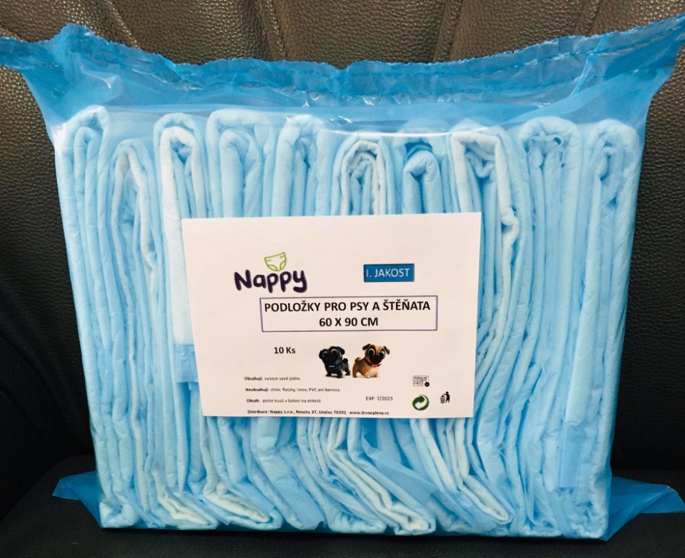 Extrémně savé podložky s vodotěsnou spodní vrstvou, která zabraňuje úniku tekutiny. Vhodné pro nácvik hygieny u štěňat, pro nemocná zvířata, do transportních boxů, apod. Jedná se o dětské přebalovací podložky s kosmetickými vadami - převážně šité boky.