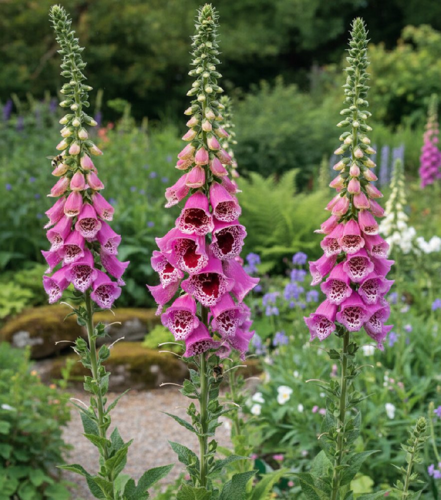 Náprstník vlnatý 'Giant Spotted' (Digitalis lanata 'Giant Spotted') vás zaujme vysokými klasy růžových květů s tmavou žilkovanou kresbou uvnitř. Zvonkovité květy této půvabné dvouletky rozkvétají v červnu a červenci. Vytváří atraktivní vertikální akcent v trvalkových záhonech i jako solitéra. Díky své výšce 80–90 cm je vhodný i k řezu, ovšem s mimořádnou opatrností. Všechny části rostliny jsou prudce jedovaté.