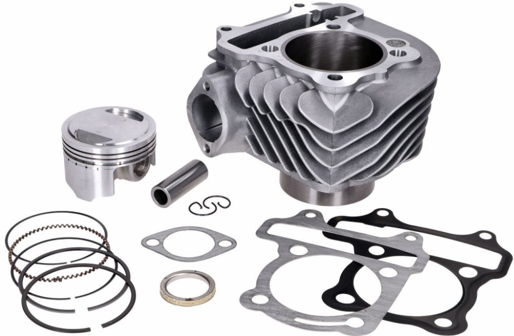 Válec Naraku 160ccm s kovaným pístem, d=58,5 mm, GY6 125/180 - Válec od specialisty na čtyřtaktní motory Naraku. Válec má objem 160ccm a je pro motory GY6. Nárůst výkonu je znatelný, jedná se o jeden z mála válců pro 125ccm, stále však za dostupnou cenu. Výhodou této sady je, že obsahuje kovaný píst, který je z lepších materiálů a je odolnější a proto lze nastavit i větší kompresi. Sada se dodává bez hlavy a je nutné použít originální.
