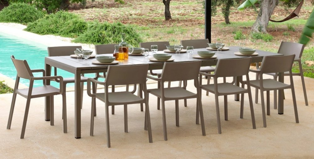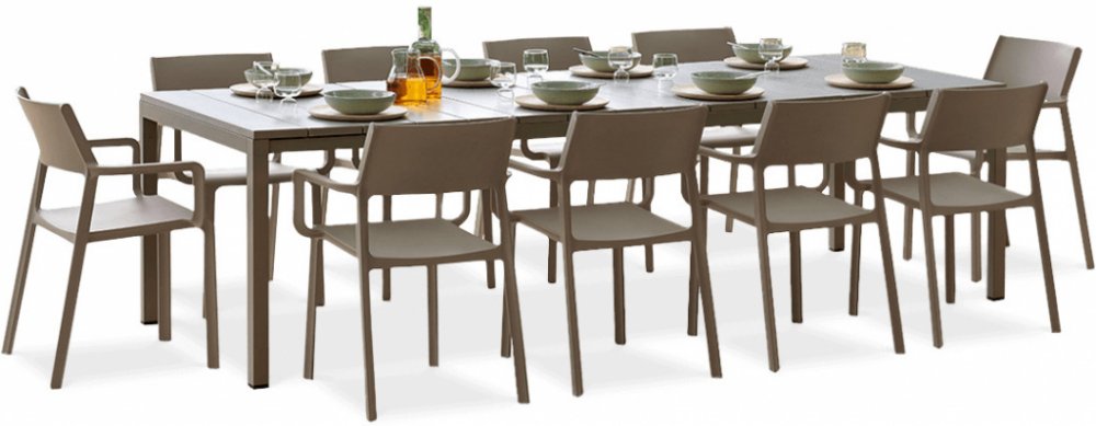 Zahradní set Nardi TRILL/RIO - 10/210 Tortora - Popis Větší počet hostů nemusí být vůbec žádný problém. Se zahradním setem Nardi Trill/Rio 10+1 Tortora můžete pohodlně usadit 10 osob u jednoho stolu. A nikdo si nebude stěžovat na nepohodlí. Nábytek Nardi Trill/Rio 10+1 je ve všech ohledech vysoce kvalitní. Od pohodlí uživatelů v nejširším slova smyslu až po čistě estetický zážitek. Díky použitým m...