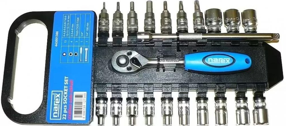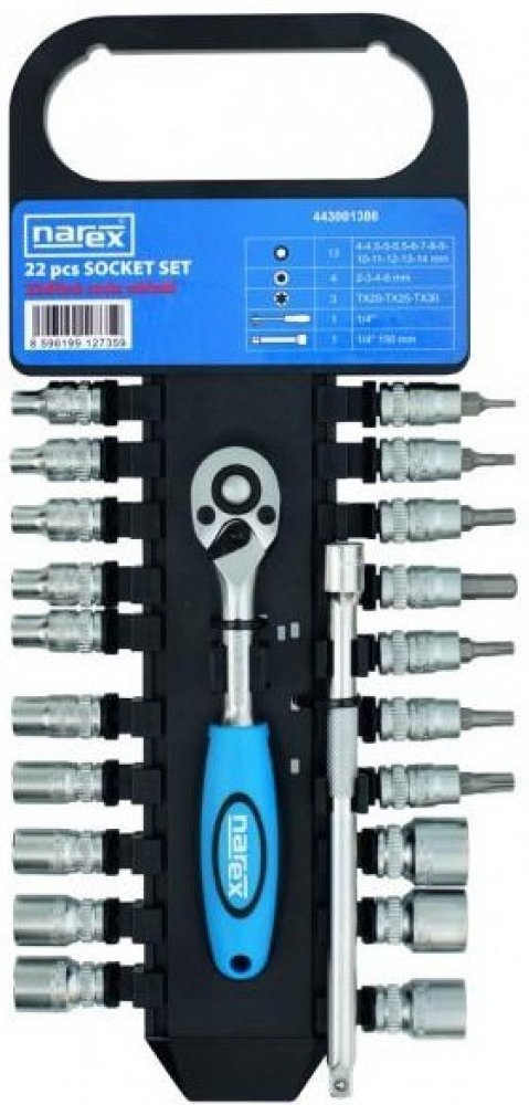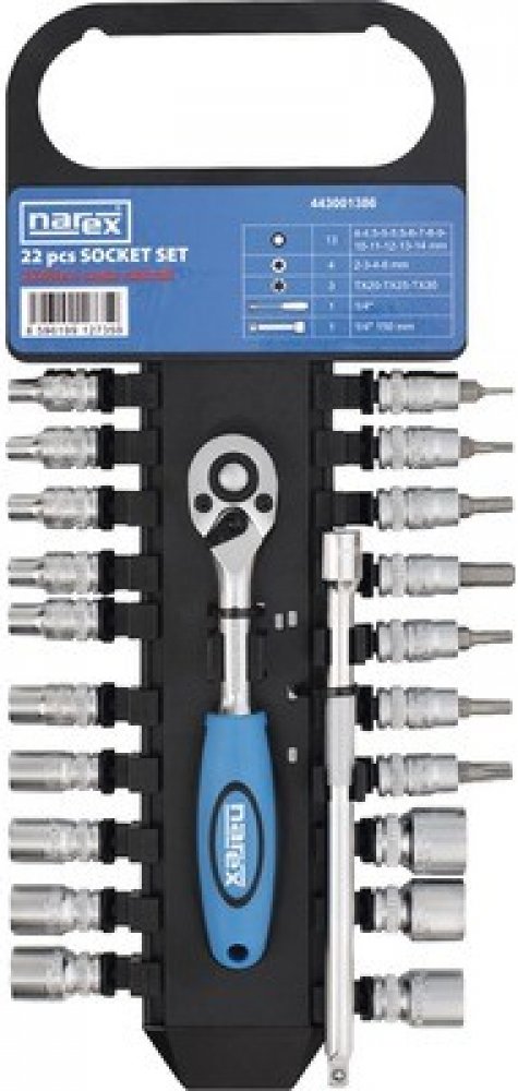 Narex 443001386 Profi 22-dílná 1/4" gola - sada nářadí na liště