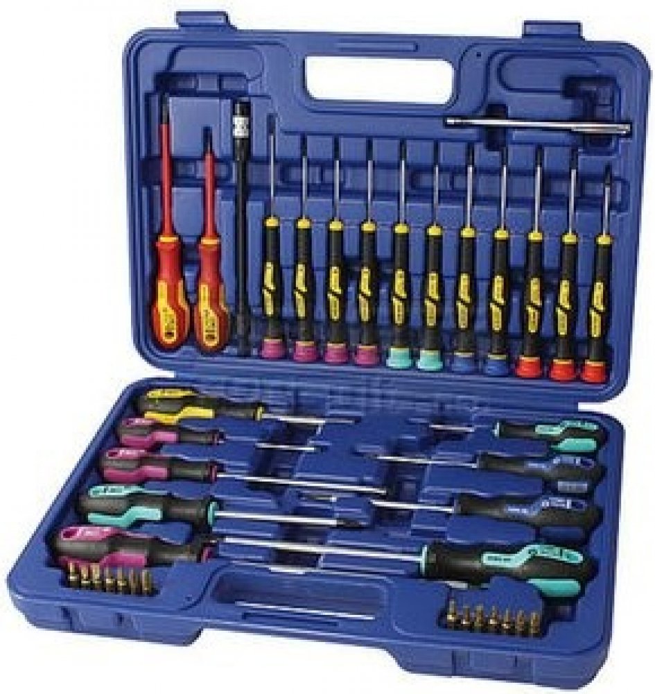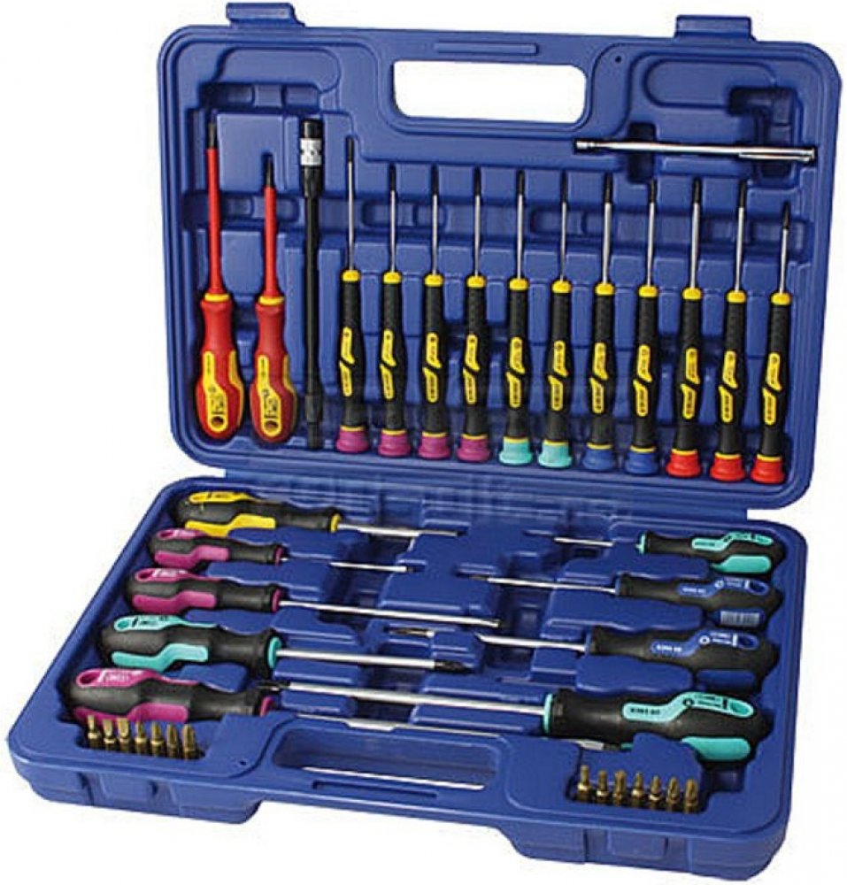 Prakticky a uceleně poskládaná souprava klasických i elektro šroubováků. Ideální pro autoservis či dílnu, ale i náročného hobby uživatele.