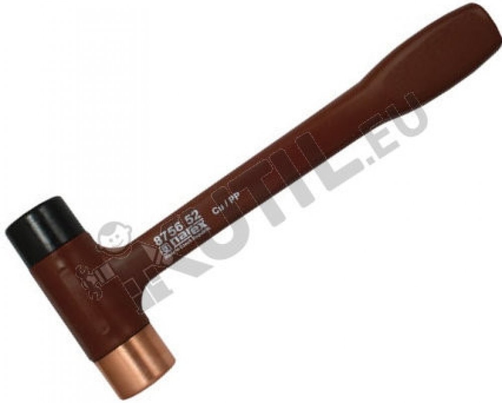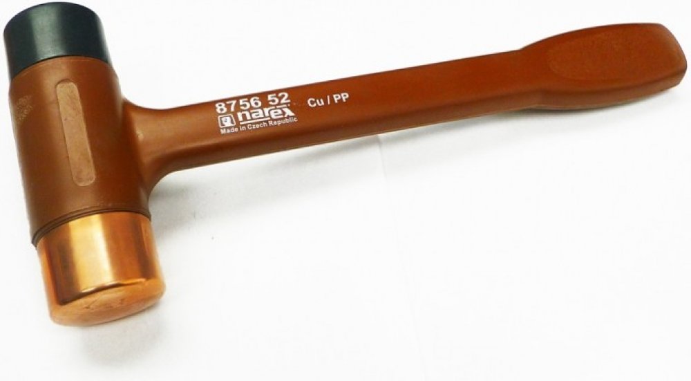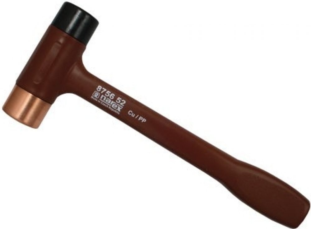 Palička s měděným a plastovým koncem 290mm Narex 8756 52 Palička s měděným a plastovým úderným koncem. Palička pro silné údery v nejiskřivém provedení zajišťující nepoškození upravovaného předmětu. Vhodná mimo jiné pro montáže a demontáže ložisek. V porovnání s 8756 42 je úderová hlava měkčí. tělo: plast úderný konec: Cu / PP celková délka: 290 mm