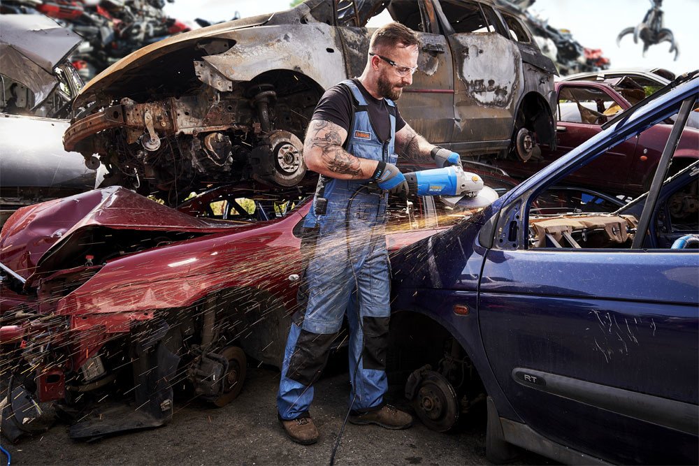 - úhlová bruska s výkonným 2 600W silným motorem pro rychlé a efektivní dělení, broušení a kartáčování kovů, stejně jako pro dělení různých stavebních materiálů