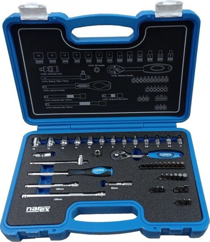 Kombinovaná gola sada šestihranných hlavic 1/4" a 1/2" v plastovém kufříku. Opatřeno matnou chromovou povrchovou úpravou (micro satin). Nástavce a hlavice jsou navíc opatřeny také vroubkovanou částí pro pohodlnou manipulaci. Sada je určena výhradně pro ruční použití.