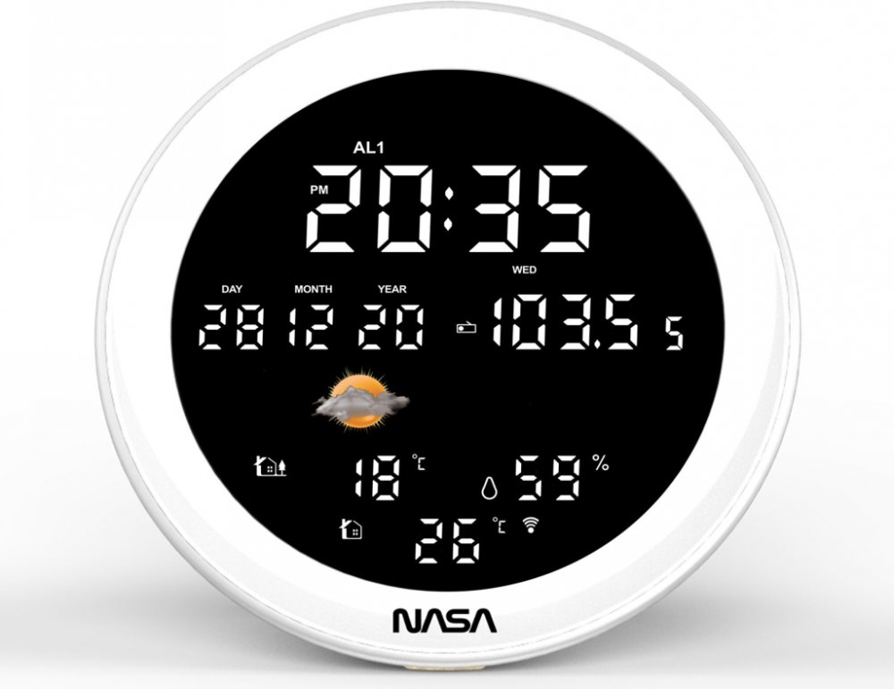 S NASA WSP1700 získáte Bluetooth reproduktor a základní informace o počasí. Tato kompaktní bezdrátová meteostanice se třemi bezdrátovými venkovními čidly vám ukáže nejen aktuální počasí, ale také vnitřní/venkovní teplotu a venkovní vlhkost. 5,3" LCD displej s podsvícením umožňuje rychlé a snadné čtení všech ukazatelů, ať už jej umístíte kdekoli v domácnosti. Slouží také jako hodiny, kalendář, FM rádio a má dokonce i funkci budíku. Meteostanice funguje na síťové napájení přes přiložený napájecí adaptér. Venkovní čidla se napájí pomocí dvou AAA baterií (nejsou součástí balení).