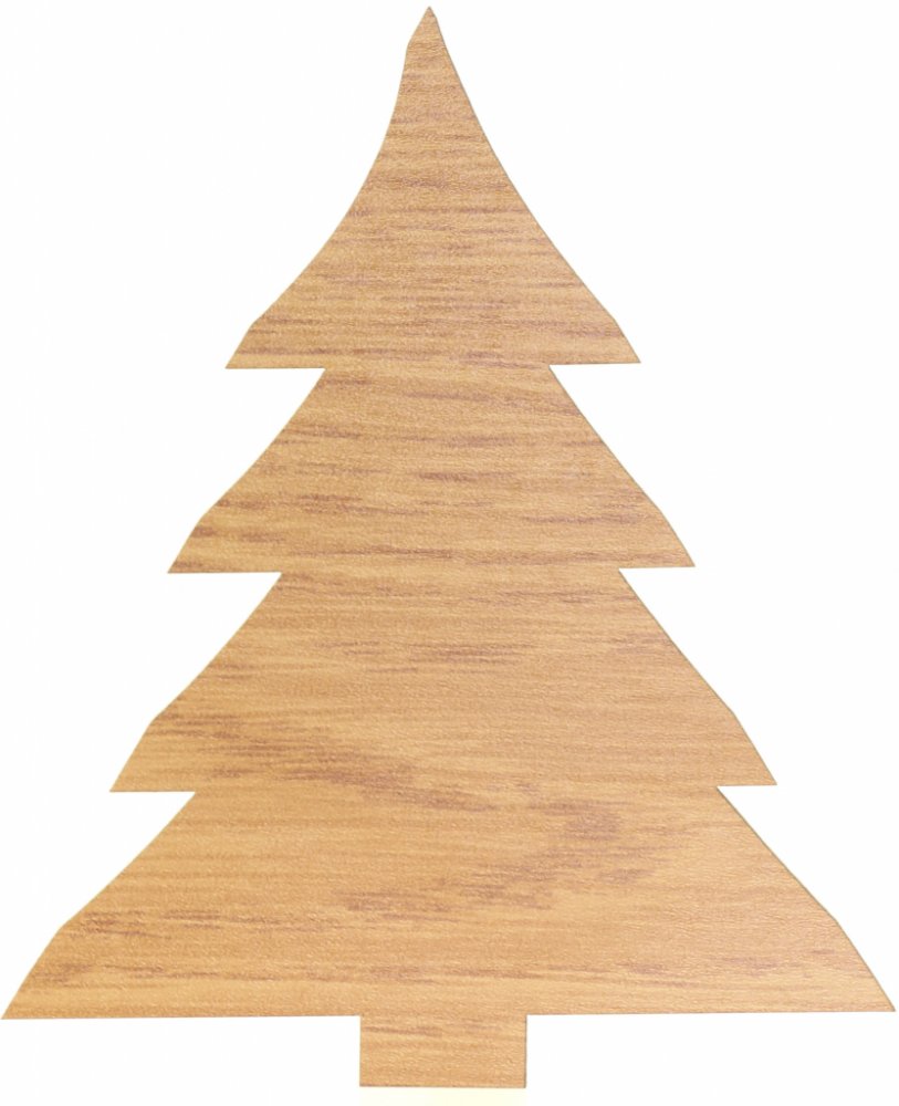 Dřevěný strom, vyrobený z oboustranně dekorované desky, vhodný k dekoraci vánočních věnců a jiné dekoraci.