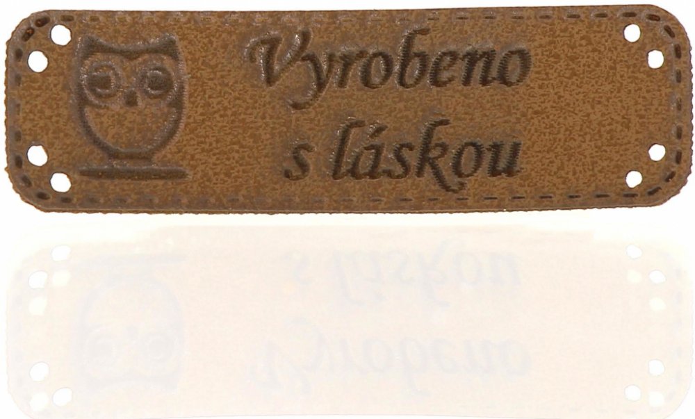 Originální koženkový štítek naší produkce k označení Vaších výrobků. Tloušťka 0,9mm. Český výrobek.